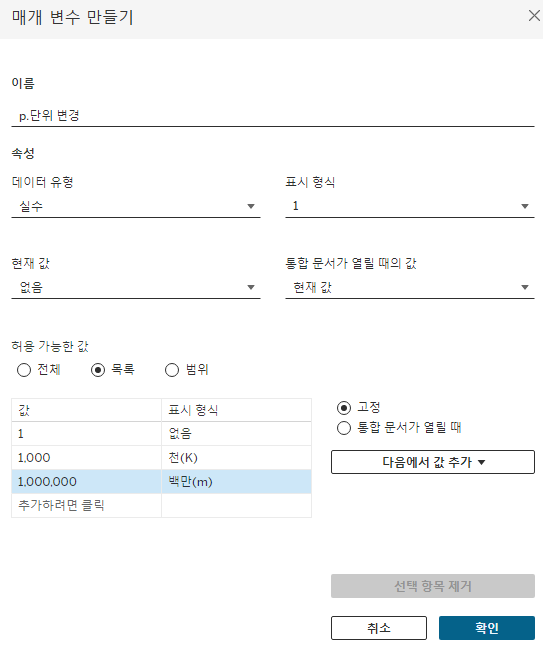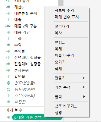 매개변수를 잘 사용해야 태블로를 잘 활용할 수 있다.