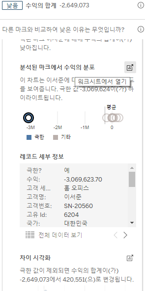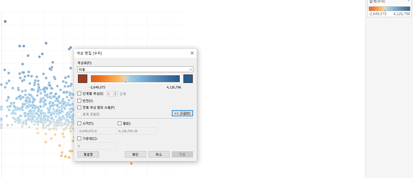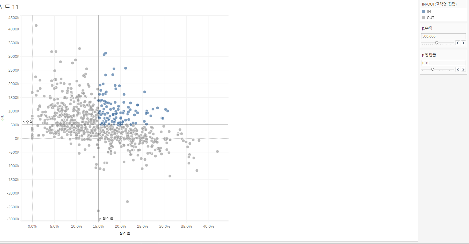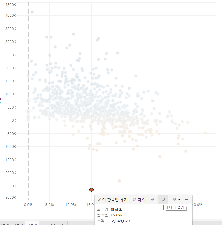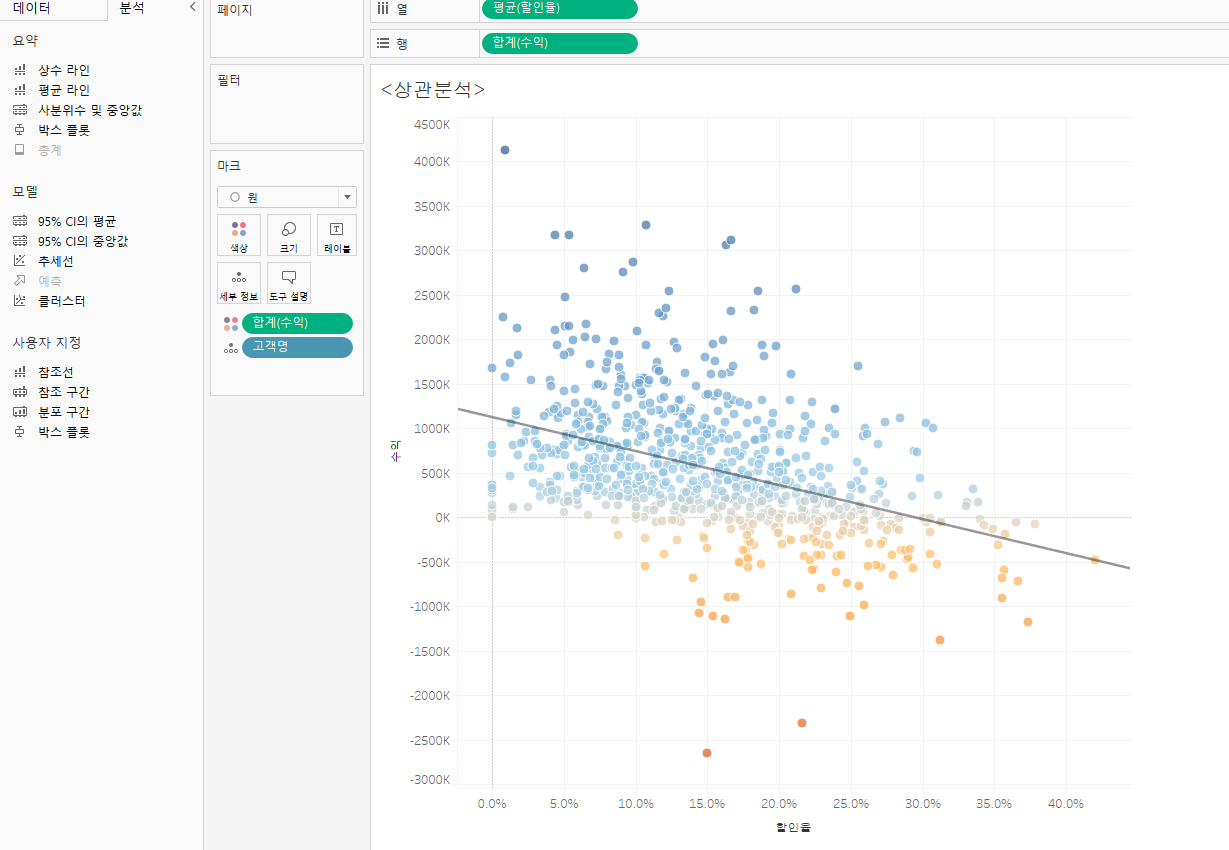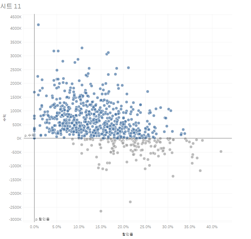 수익에 따른 색상을 넣으니 흑자 적자가 나뉘는데