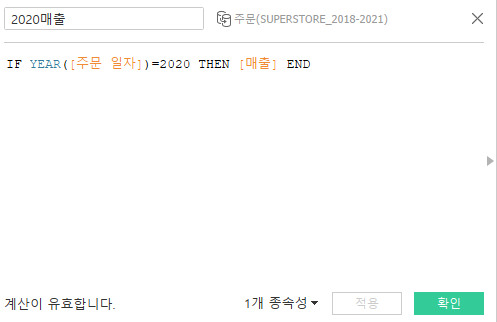 매출 데이터에서 2020년 매출만 이용해서 값을 만드는데