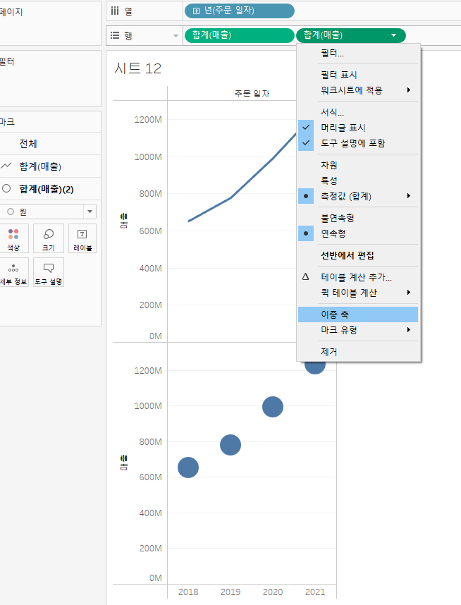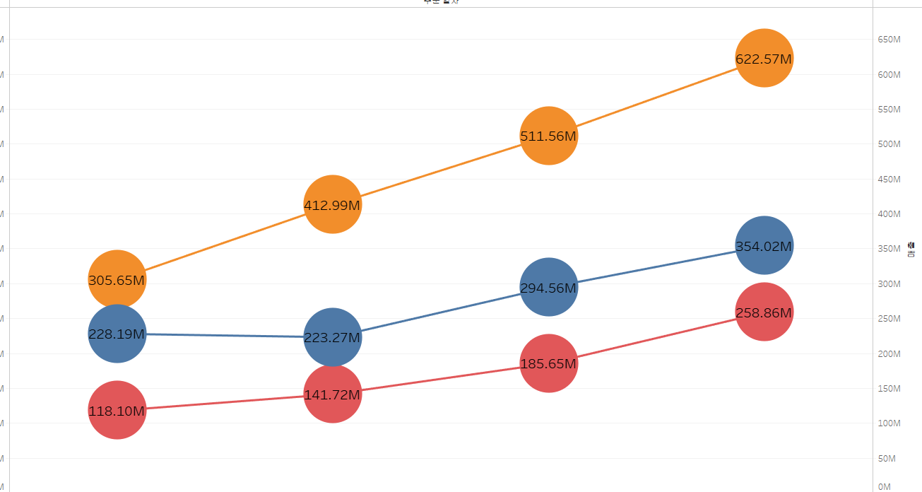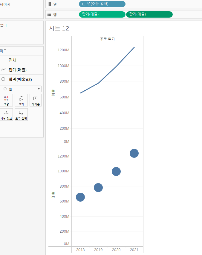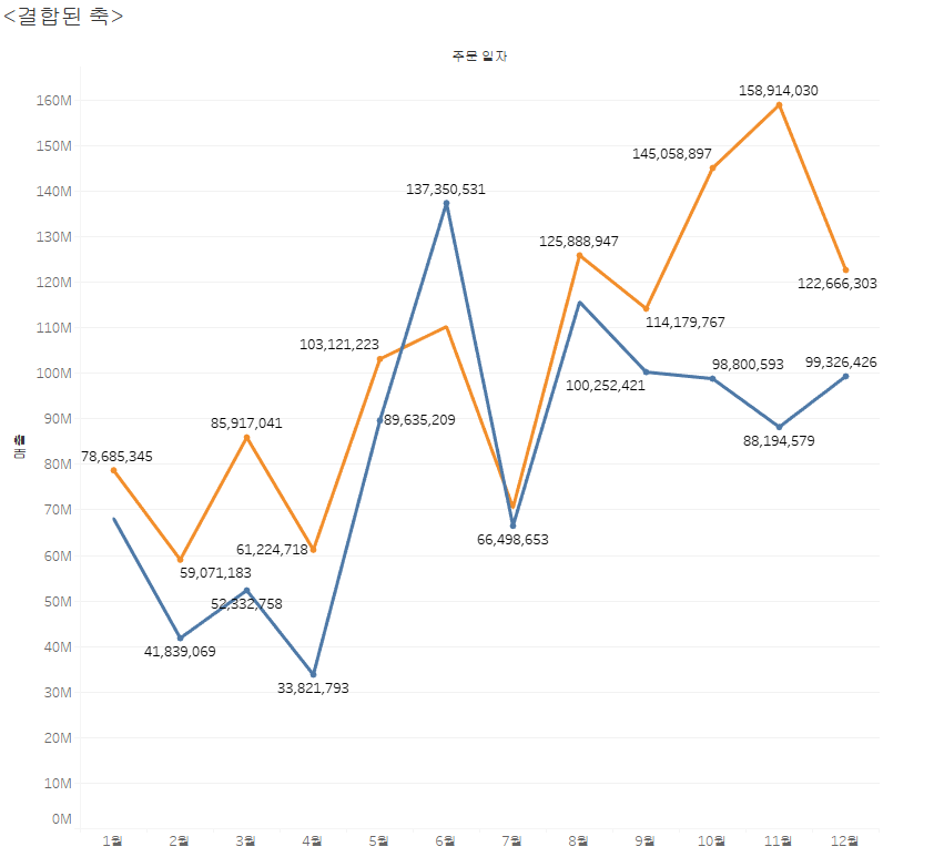 이렇게 매출이라는 값은 범위를 공유하는 두 그래프 완성