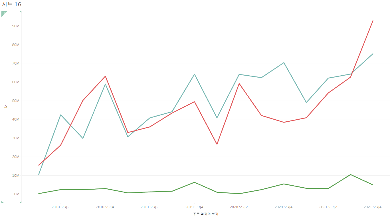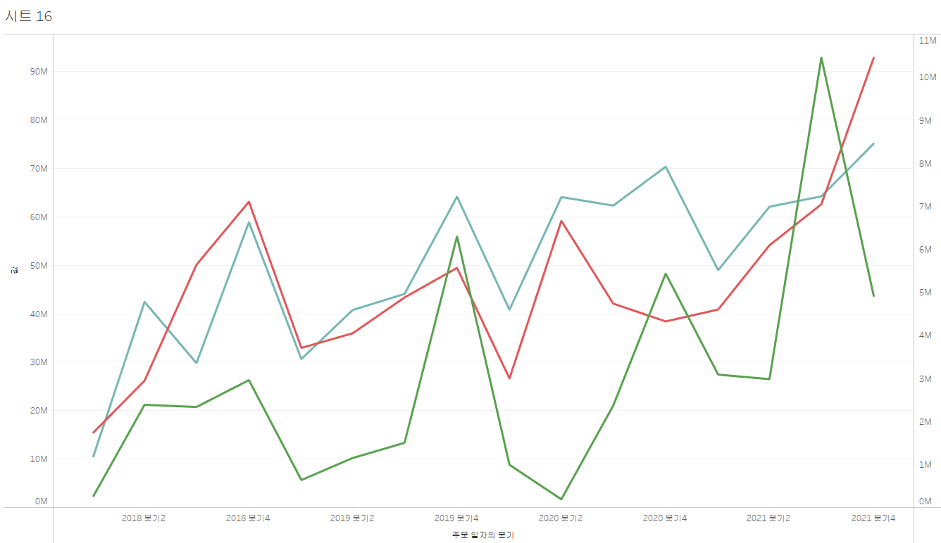 그래서 매출 데이터를 보고 싶다 ->매출은 하나인데 결합된 축으로 보자 -> 결과는?